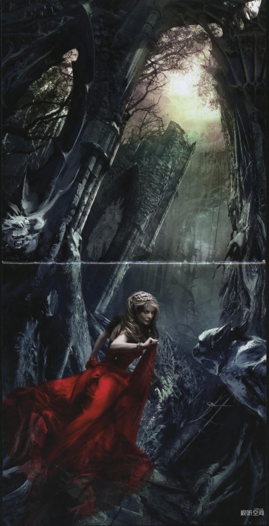 2008年,莎拉·布莱特曼作全球发行了专辑《交响魅影》,EMI不惜血本对这张新专辑大肆宣传,让这张 大气恢 宏,同时将艺术与商业的完美结合的作品顺势成为各国唱片销售排行榜的冠军。《交响魅影》的专辑封面和内页设计都非常精美,如同古典油画般精致亮眼。封面上的莎拉·布莱特曼造型透着黑暗华丽的哥特美感:身着妖冶的鲜红长裙的她,将原本的一头黑发染成了暗金色,并画上了潮流最时尚的烟熏妆,裙摆飞扬,在背景破落的森林古堡映衬下,仿佛一只展翼欲飞的吸血妖姬,更显得冶艳十足,惊世骇俗。
