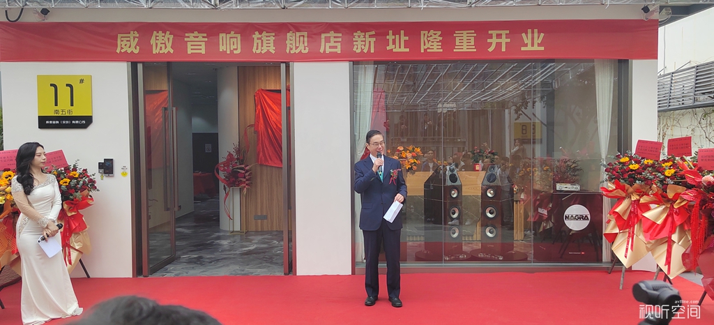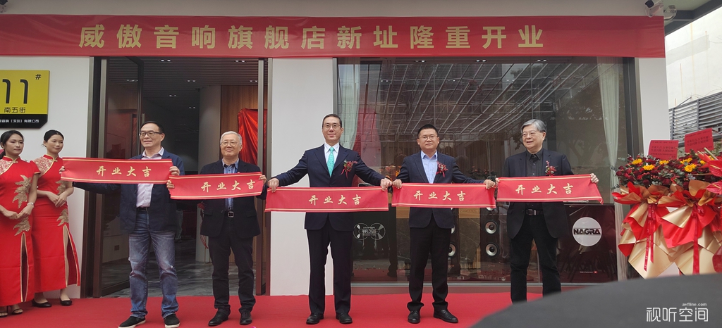 本次开业盛典特邀重量级嘉宾莅临助阵,包括香港凌智有限公司、威傲音响有限公司老板唐庆年先生,美国珍尼西斯老板 Gary 先生,同创汇集团副总经理王刚先生,威傲音响有限公司田峻先生,《新音响》杂志总编赖英智先生等,行业精英齐聚,共贺盛事。