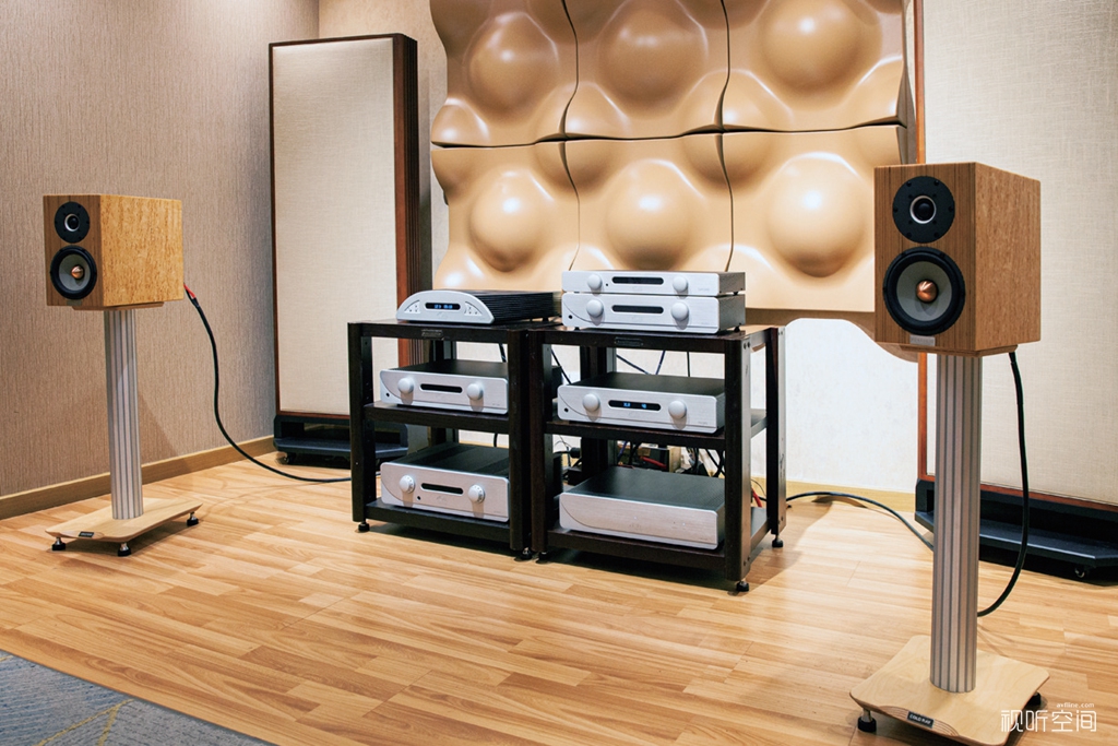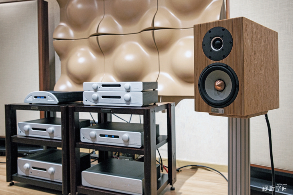 由此我很自然地想到——作为合并机的IN300 EVO都如此厉害,那么更高级别的PR300 EVO/AM300 EVO前后级放大器岂不是更……?那用什么来验证PR300 EVO/AM300 EVO的实力呢?测试IN300 EVO时所用的PENAUDIO Talvi音箱显然不足以挑战PR300 EVO/AM300 EVO,只有用到更高级别的Cenya Signature了。Cenya Signature可以说是体验PENAUDIO精粹的入口,它首先采用了PENAUDIO赖以成名的“多层结构板”箱体,有着辨识度很高的路纹。这些条纹是由于将两种不同的薄木片交错堆叠层压而形成的。PENAUDIO这样做绝对不是为了好看,而完全是从音质的角度考虑。单一的箱体材料处理谐振通常不太理想,因为每种材料都有固定的谐振频率。PENAUDIO是通过多种材料的相互作用,来将箱体谐振抵消。其次Cenya Signature使用了SEAS顶级的Excel单元。Cenya Signature的美态并不轻易示人,我曾在一个台湾烧友的系统中听到它发出了“毒性”极强的声音,不过当时所用放大器的身价已是Cenya Signature的数倍,因此我很想知道PR300 EVO/AM300 EVO究竟能将Cenya Signature的美态发挥到何种程度。