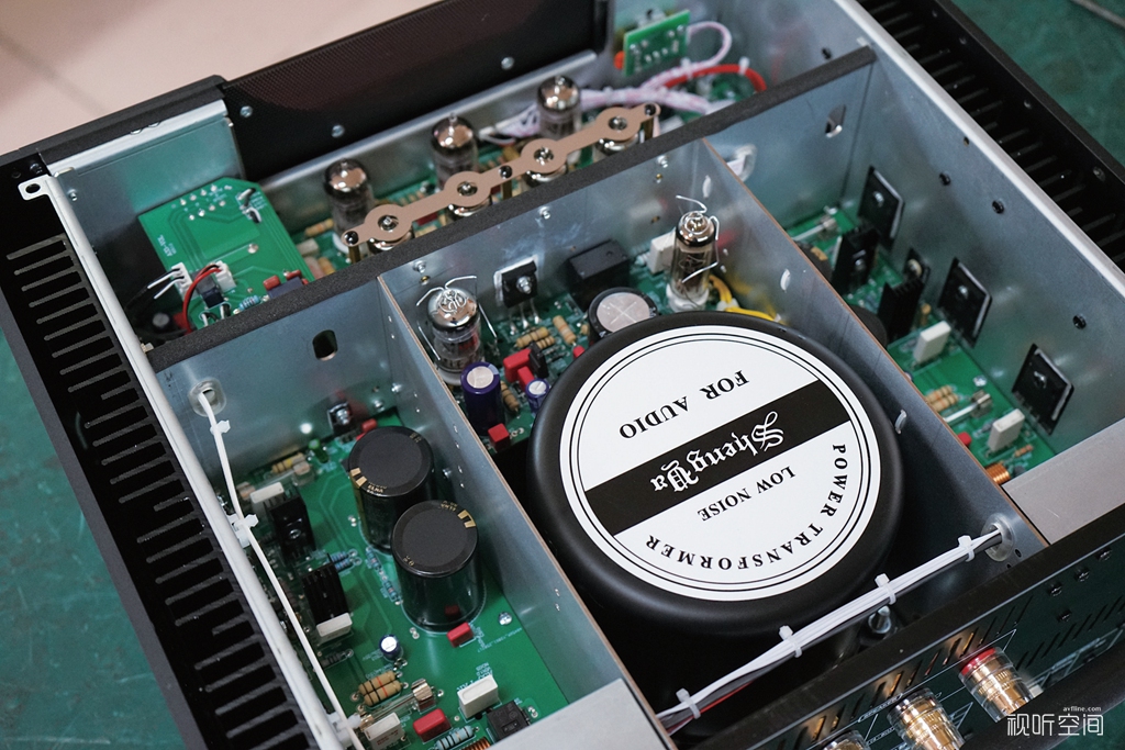 作为经典A25CS的全面升级机型,A33的内在可谓是突破性地设计改进,它的前置放大采用了9只电子管构成的三级放大,其中输入级采用12AX7电子管负责信号解析,电压放大级由2只12AU7担当,保证了大动态无压缩输出,驱动级则由4只6P1功率管组成SEPP电流放大电路,既提高了工作稳定性,又大幅地增强了驱动力;同时,电源部分还搭配了6Z4整流管与12AU7稳压管,相比A25CS配置的6只电子管前置放大结构,设计技术明显更精进、更优越,从而也获得更良好的乐感和更完美的声音表现。