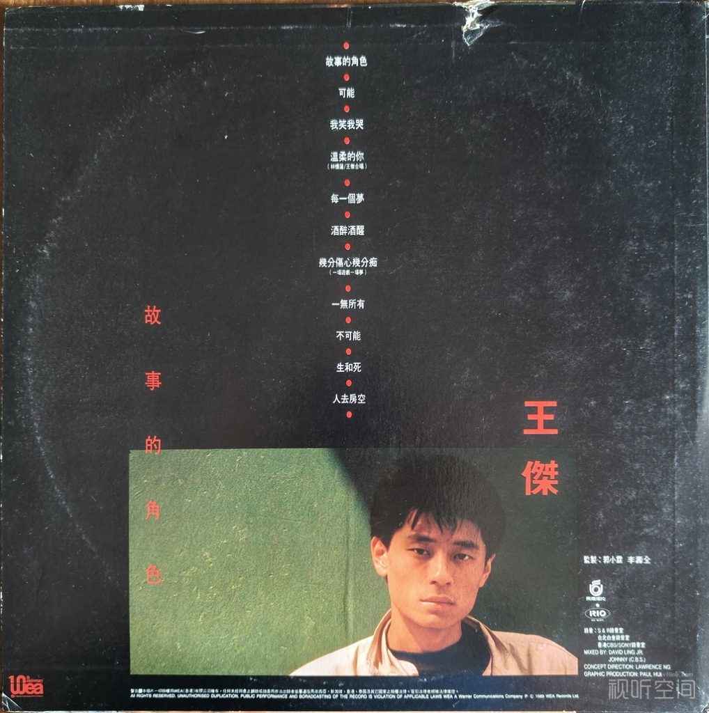 (一)《故事的角色》是地地道道的香港黑胶唱片。虽然是港台融通合作的专辑,王杰也出生在台湾,监制、作曲、编曲均主要来自台湾,但这是台湾飞碟唱片公司授权香港华纳在香港出版发行,唱片封套版记明确记载“一切版权为WEA(香港)有限公司拥有”,故归为香港唱片无疑。