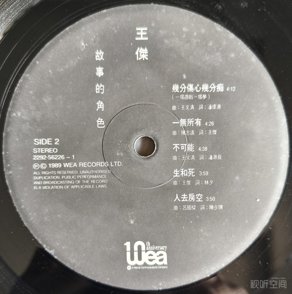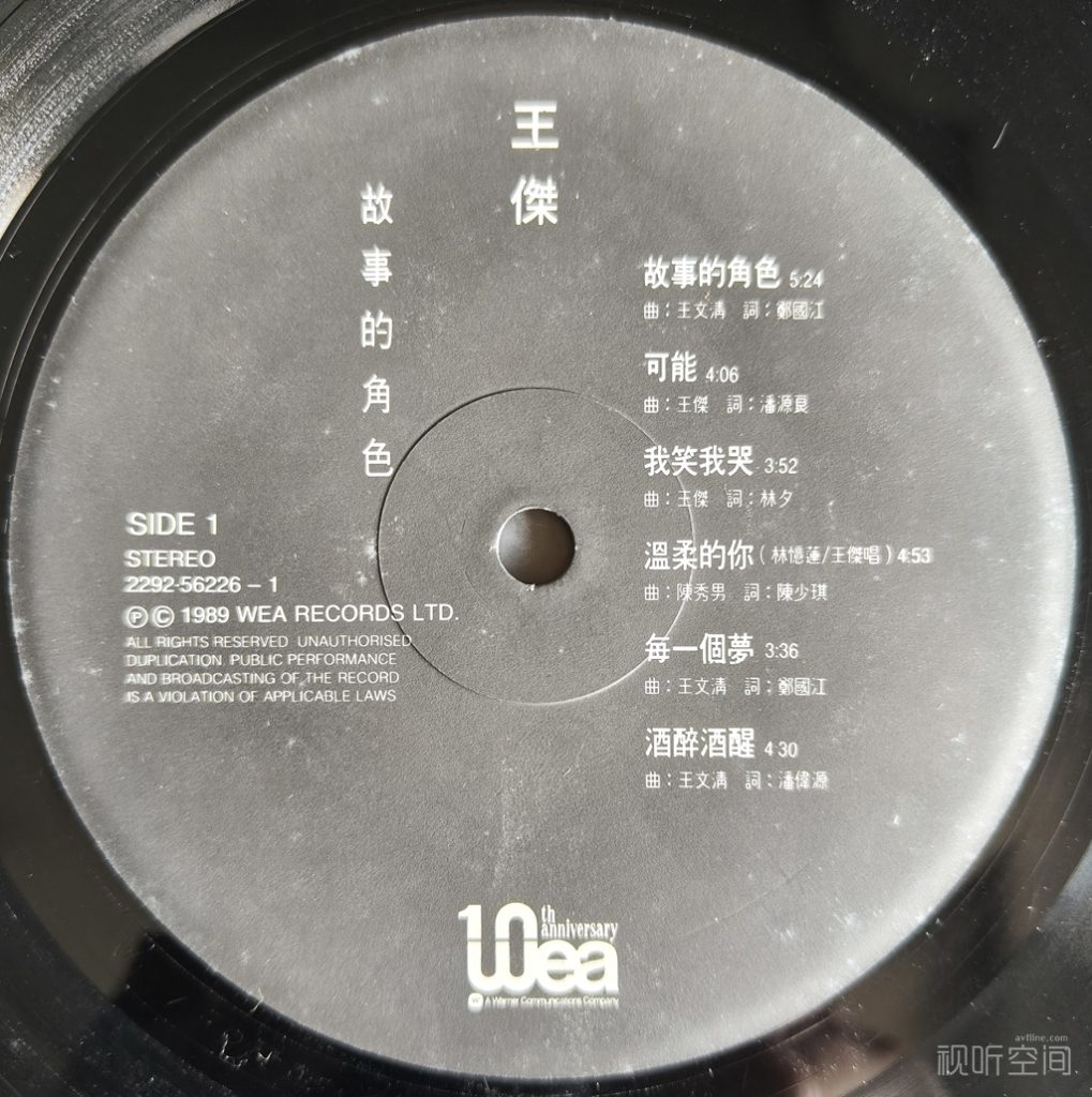 至于版本,香港华纳黑胶一般分为两个版本(版次),一为平心版,二为凸心版。《故事的角色》既为香港华纳出品,也不例外。笔者这张为凸心版,与其他发烧友手中的平心版对比,平心版声音略干,声音层次略糊,声音密度及厚实感稍欠,背景也略噪。