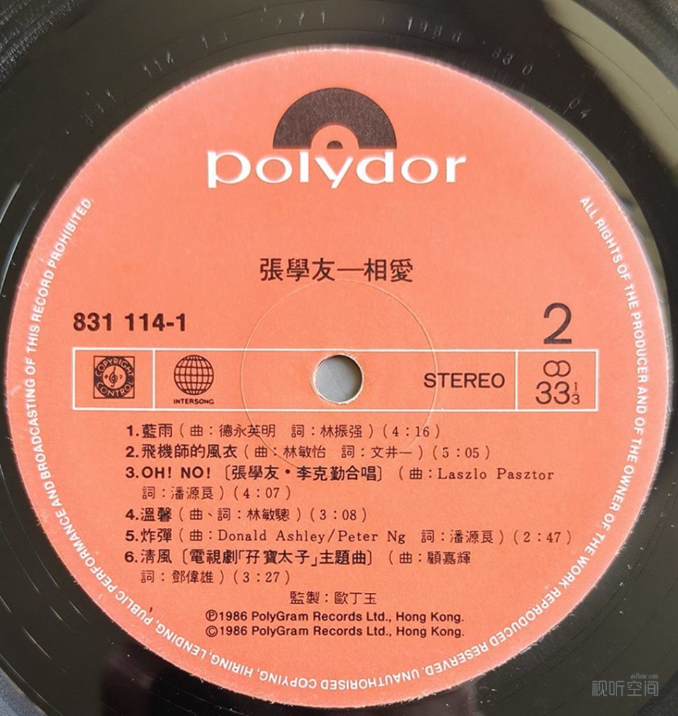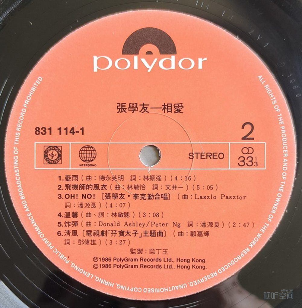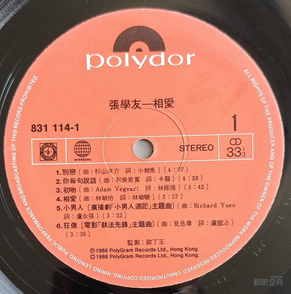 至于录音、版本与声音,笔者注意到,这张专辑有到日本录音的版载。从专辑整体制作来看,启用多国乐手、部分录音在日本完成,体现出国际化水准,契合当时香港乐坛兼容并蓄的发展态势,见证了张学友早期音乐风格的成型,也映射出香港流行乐坛在发展高峰时的活力与创造力,即便在竞争激烈的当时,也能凭借优质作品脱颖而出,成为港乐发展历程中不可忽视的佳作。笔者目前收藏有两个版本,一为“两面全平只有第1面有双内圈线版”,二为“两面全平无双内圈线版”,当然,肯定还有凸圈心边版,而且市面上大多数为凸圈心边版。第一、两面圈心边全平版,圈心码均为1Y1、2Y1,故不能以圈心码作为区分标的。第二、既然不能以圈心码作为区分标的,那只能以单双圈线来区分,目前笔者收藏的多张该唱片,只有第1面有双内圈线版本,而无两面都有双内圈线版本,笔者也留意多时,终未遇见市面上有两面都是双内圈线版本。或者有,只是笔者暂时无缘遇见而已。第三、“两面全平只有第1面有双内圈线版”与“两面全平无双内圈线版”最大的主要区别,在于有双内圈线一面,声音更为宽松,而要达到宽松,必然满足一个前提,就是声音更为厚润,一般情况下,声音一旦厚润,很可能是早期版本,若是早期版本,则声音背景一般又更为宁静,线条更为清晰,层次更为分明。因此,找到了某张有突出特点的香港流行黑胶,这张黑胶可能又同时兼具了其他几个优点。广大音乐和音响发烧友不妨试试,验证一下。