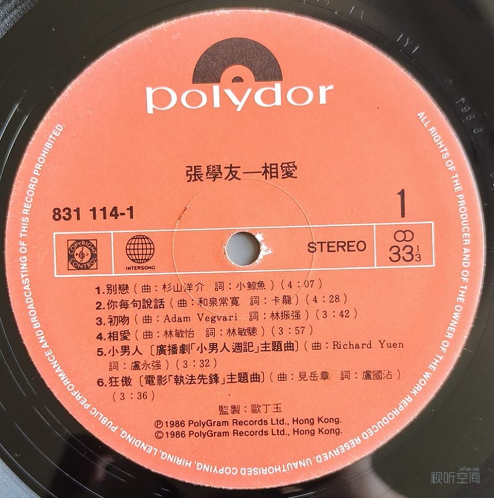 香港流行黑胶唱片的价值与版本鉴别(73)张学友《相爱》