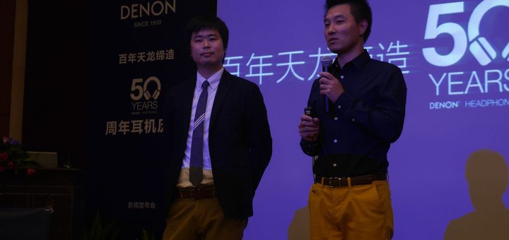 9月6日,天龙马兰士在广州东方宾馆进行了一个发布会,纪念DENON天龙耳机面市50周年,并发布一系列2016年的耳机新品。天龙耳机设计师(左)与上海电音马兰士电子有限公司总经理宋光宇(右)一同做活动发言有着百年历 …